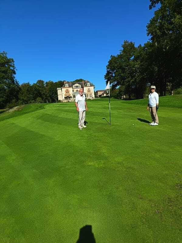 Imaginez un peu , une journée d'automne ensoleillée sur un golf magnifique et challengeant (quelques dog-legs bordés d'arbres, et surtout des greens pentus et des drapeaux dans les pentes, en même temps pas facile de faire autrement) avec des gens sympahiques !